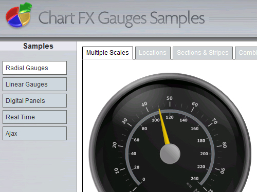 This set of samples shows how to effectively integrate digital, linear and radial gauges in a web environment. It also ilustrates how to work with the most useful properties, as well as advanced features like creating a real-time gauge and working with Ajax.